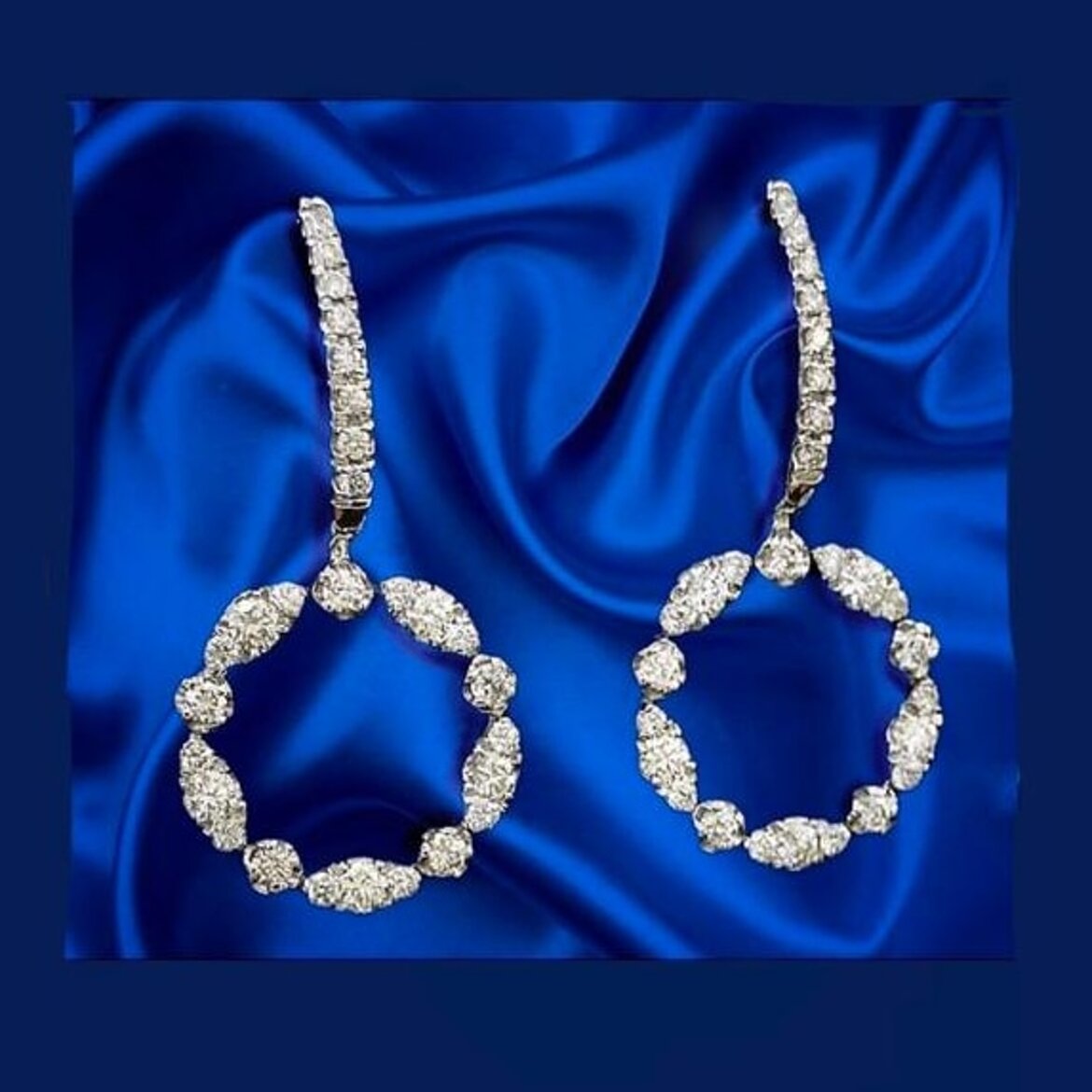 Orecchini di Smeraldi naturali taglio ovale in oro bianco 18Kt con Diamanti taglio brillante F color ottimo taglio.
